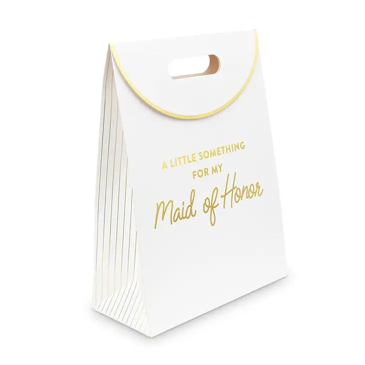 WHITE PAPER GIFT BAGS FOR MAID OF HONOR - GOLD FOIL WRITING